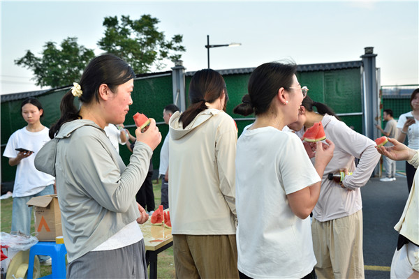 Chilled drinks and fresh watermelon provided comfort to their tired bodies and minds, while sincere exchanges deepened the team's camaraderie.